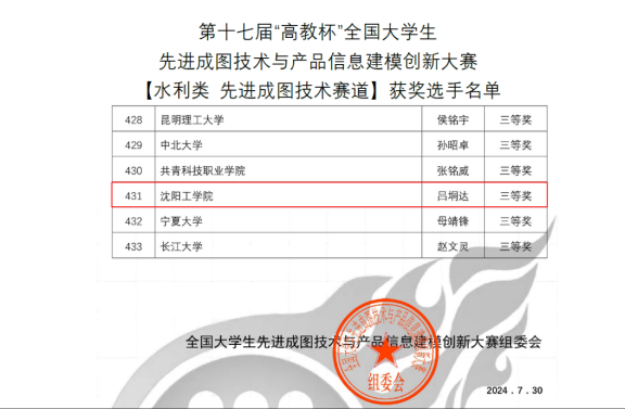 7月26日至28日,第十七届全国先进成图与产品信息建模创新大赛总决赛成功举办。该赛由中国图学学会制图技术专业委员会、中国图学学会产品信息建模专业委员会、贵州大学、全国大学生先进成图技术和产品信息创新大赛组委会主办,是图学类课程最高级别的国家级赛事。本届共有895所高校参赛,近40万学生参赛,12694名学生进入决赛。我校作为辽宁省分赛场之一,负责承办辽宁省水利赛道、道桥赛道、电子赛道比赛。