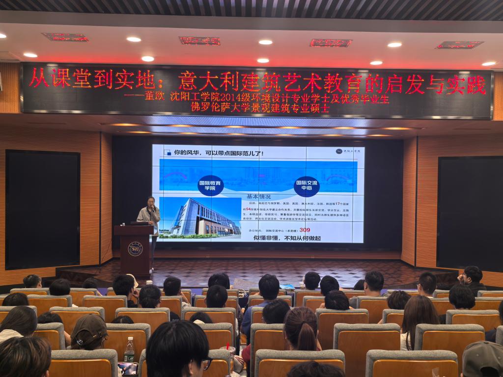 6月16日下午,2014级环境设计专业的杰出毕业生、佛罗伦萨大学景观建筑硕士董欧同学应邀重返母校,在国际教育学院报告厅作了题为《从课堂到实地:意大利建筑艺术教育的启发与实践》的精彩案例分享。此次活动由艺术与传媒学院和国际教育学院共同主办,吸引了200多名师生代表的积极参与。