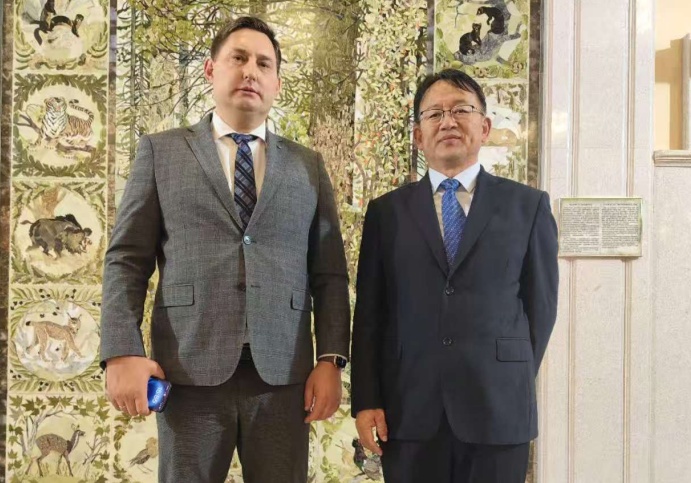 李康举校长与中国驻哈巴罗夫斯克总领事馆代总领事刘阳亲切交谈