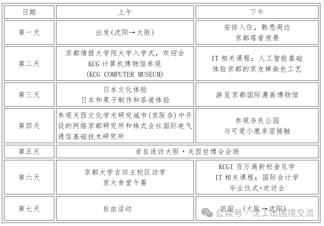 1.费用包括:京都情报大学院大学学费、京都情报大学院大学结业证、海外保险费、全程住宿费、机场集体接送费、欢迎会餐饮费、集体活动时的门票及各项文化体验费用。