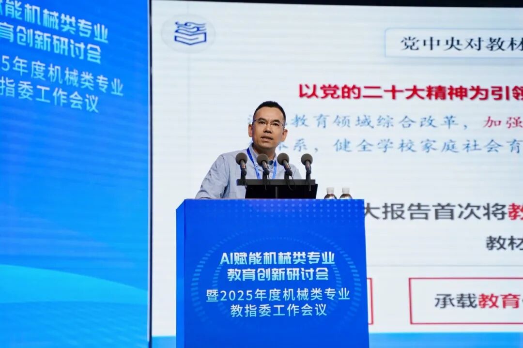 特邀报告环节同样亮点纷呈。华为公共事业军团副总裁、华为全球教育医疗行业总经理赵祎鑫在《All Intelligence,加速教育数字化智能化发展》报告中,分享企业参与教育数字化的实践经验,提出通过技术赋能推动教学模式革新;美的集团高端重载机器人全国重点实验室(蓝橙实验室)主任刘前进博士以《美的机器人自主化进程》详细介绍了美的机器人的情况及工业机器人自主化之路,解析机器人行业发展对人才能力的新要求;高等教育出版社工科事业部副主任毛红斌则在《以匠心精神打造中国特色原创性工科教材》报告中,为机械类专业教材建设提供方向指引,助力教材贴合AI时代教学需求。