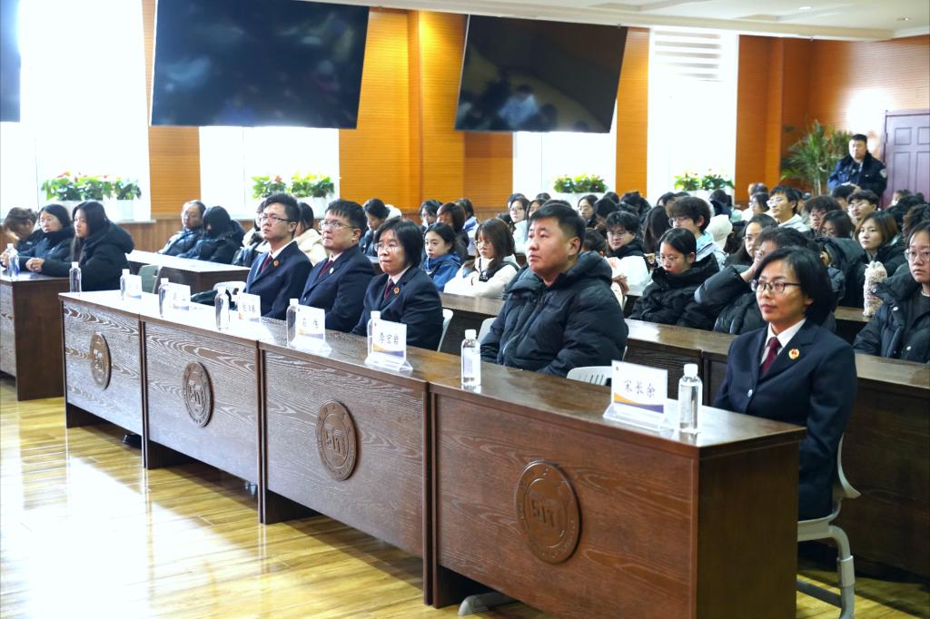 在第十二个国家宪法日来临之际,12月4日,我校在图书馆204会议室举办“弘扬宪法精神 筑牢青春防线”宪法宣传专题讲座。这是我校响应全国普法办号召,落实2025年“宪法宣传周”活动要求,学习贯彻党的二十届四中全会精神的核心举措。抚顺经济开发区人民检察院第一检察部主任赵阳春、副主任宋长余,我校党委委员、副校长石伟出席活动。