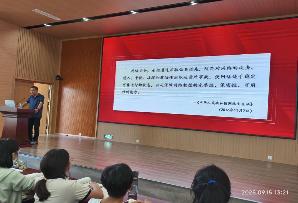 为积极响应2025年国家网络安全宣传周活动部署,深入落实教育部关于网络安全校园日的工作要求,9月16日校园日当天,我校教务处联合马克思主义学院组织开展以“筑牢数字防线:你的网络安全与国家安全息息相关”为主题的网络安全专题教学。本次教学系我校国家安全教育必修课程与网络安全宣传周校园日深度融合的重要实践,由马克思主义学院罗永飞老师担任主讲。