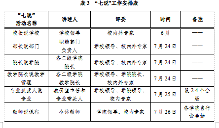 3.“七说”活动中“教师说课程”活动由各教学单位组织,组织方式自行安排,组织形式和日程安排确定后6月30日前报送评估办。