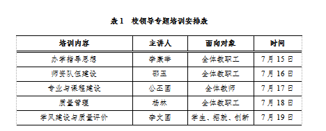 学校领导在分管领域中结合合格评估一级指标要求,开展有针对性的培训讲座,具体安排如下: