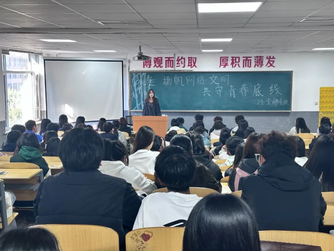 “扬帆网络文明,共守青春底线,做新时代网络正能量的传播者”。此次班会立意高远,旨在引领学生深刻体悟网络文明的深邃内涵。于网络的广袤海洋中,指引他们拨云见日、明辨是非,自觉对网络不良行为说“不”。让青春在网络空间璀璨绽放,化身网络正能量的笃定传播者与忠实守护者,为构筑风清气正的网络生态环境奉献自己的光与热。