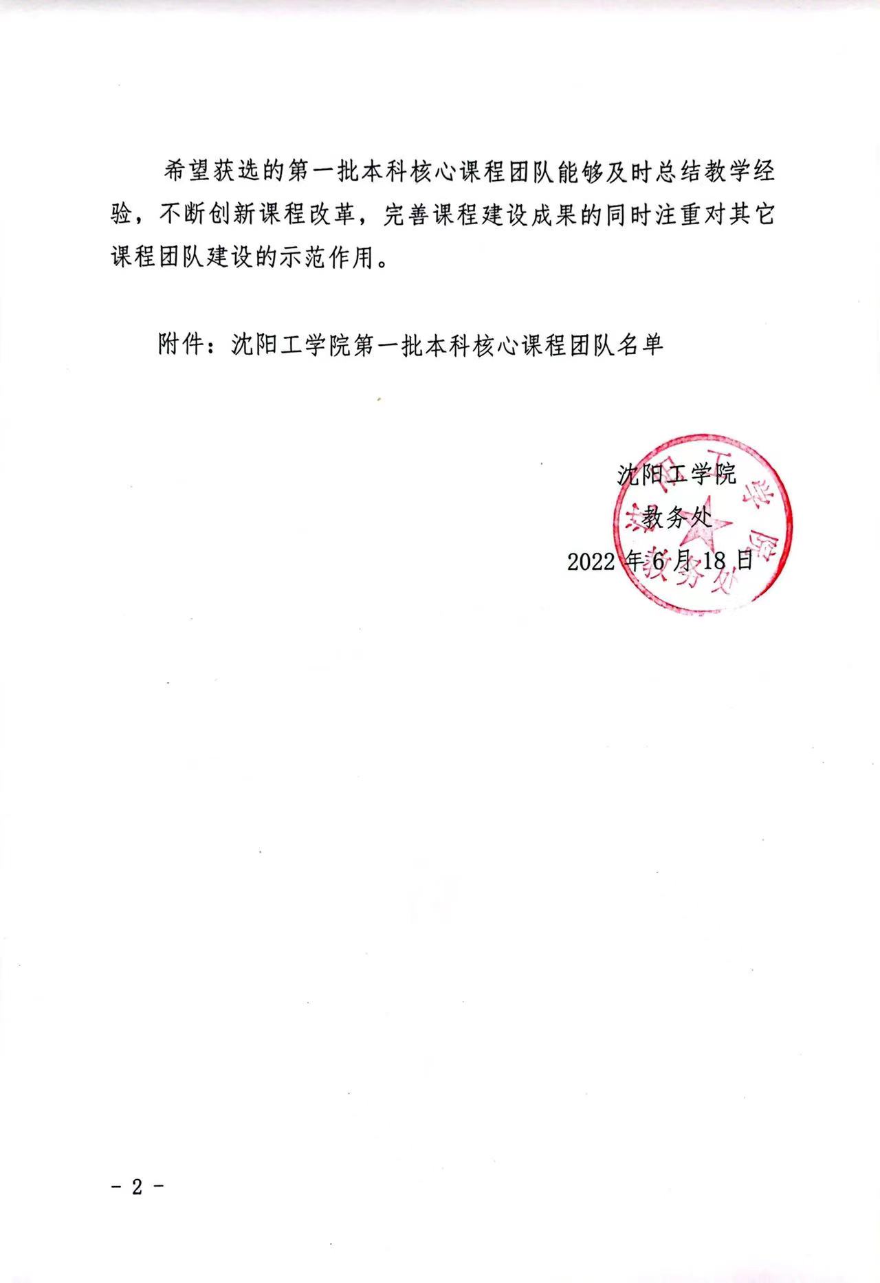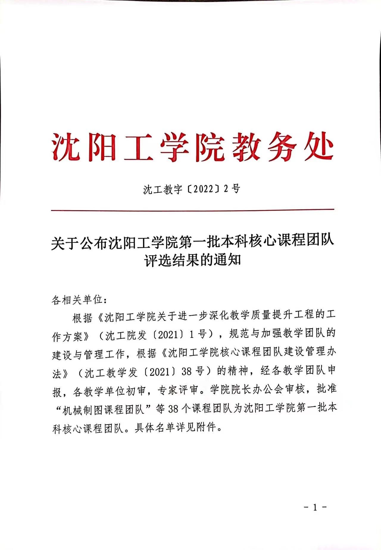 关于公布沈阳工学院第一批本科核心课程团队评选结果的通知