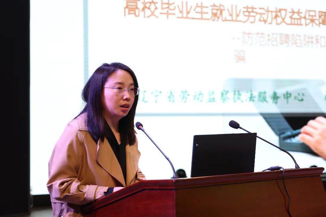 活动邀请沈阳市就业和人才服务中心毕业生部工作人员吴爽、辽宁省劳动监察执法服务中心劳动监察部部长杨侠、辽宁省大学生创业导师魏威作为主讲嘉宾。三位嘉宾分别从人才政策解读、大学生权益保障、就业创业指导服务三个方面为大学生们提供听得懂、弄得清、用得上的暖心就业服务,帮助大学生了解就业政策、分析就业形势,明确自身定位,避免求职陷阱,树立正确就业观、创业观、择业观,走稳就业之路。