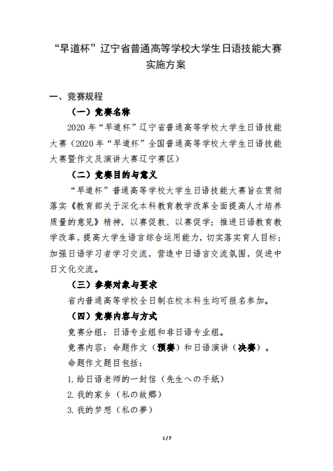 “早道杯”辽宁省普通高等学校大学生日语技能大赛实施方案
