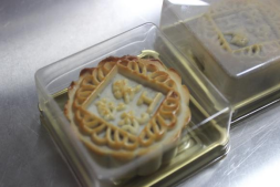 第四步:把揉好的月饼放入模具里,一按,一压,月饼就完成啦!