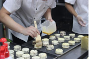活动开始,食堂厨师现场演示了做月饼的方法步骤,说明注意事项,师生们个个摩拳擦掌,跃跃欲试。在拿到原料后,大家纷纷按照流程,滚圆、压扁、包陷、压模、脱模,个个都“大展身手”,忙得不亦乐乎,大家发挥团结互助精神,有的搓面团,有的揉馅料,在一双双巧手的揉捏下,一个个圆滚滚的月饼团出现了,一会儿功夫就做了满满一桌的月饼。