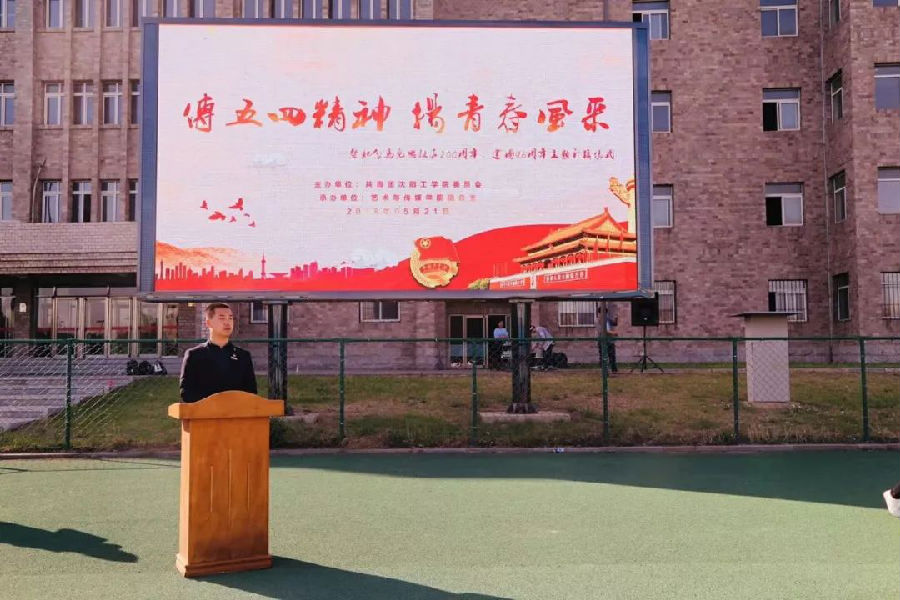 为纪念马克思诞辰200周年、庆祝中国共产主义青年团成立96周年,深入践行社会主义核心价值观,响应共青团中央“学习习近平总书记重要讲话,争做新时代青年马克思主义者”活动。2018年5月21日上午七时整,由共青团沈阳工学院委员会主办,艺术与传媒学院团总支承办的“传五四精神,扬青春风采”暨纪念马克思诞辰200周年、庆祝中国共产主义青年团成立96周年主题升旗仪式沈阳工学院体育场隆重召开。艺术与传媒学院院长助理林凯、团总支书记冯德楠及各院系团总支书记,各学院2017级学生代表参加了此次升旗仪式。