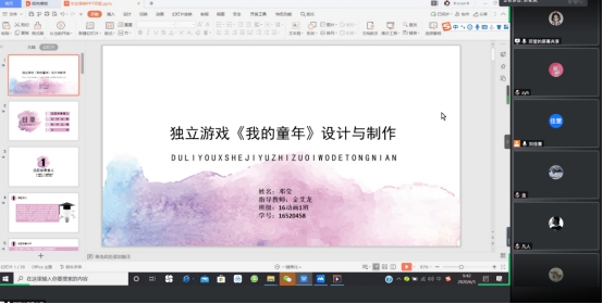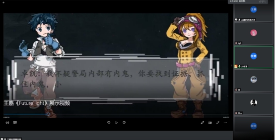 此次活动采用腾讯会议的方式进行,学生代表分别展示了自己的作品,并对自己的作品进行了详细的讲解,企业专家与我院教师通过对学生作品的解析,分别从游戏的策划设计、美术设计以及游戏的整体效果呈现等方面给予了非常专业性的建议。同时专家们也对同学们提出的技术性问题进行了详尽的解答,并给出了合理化的解决方案。