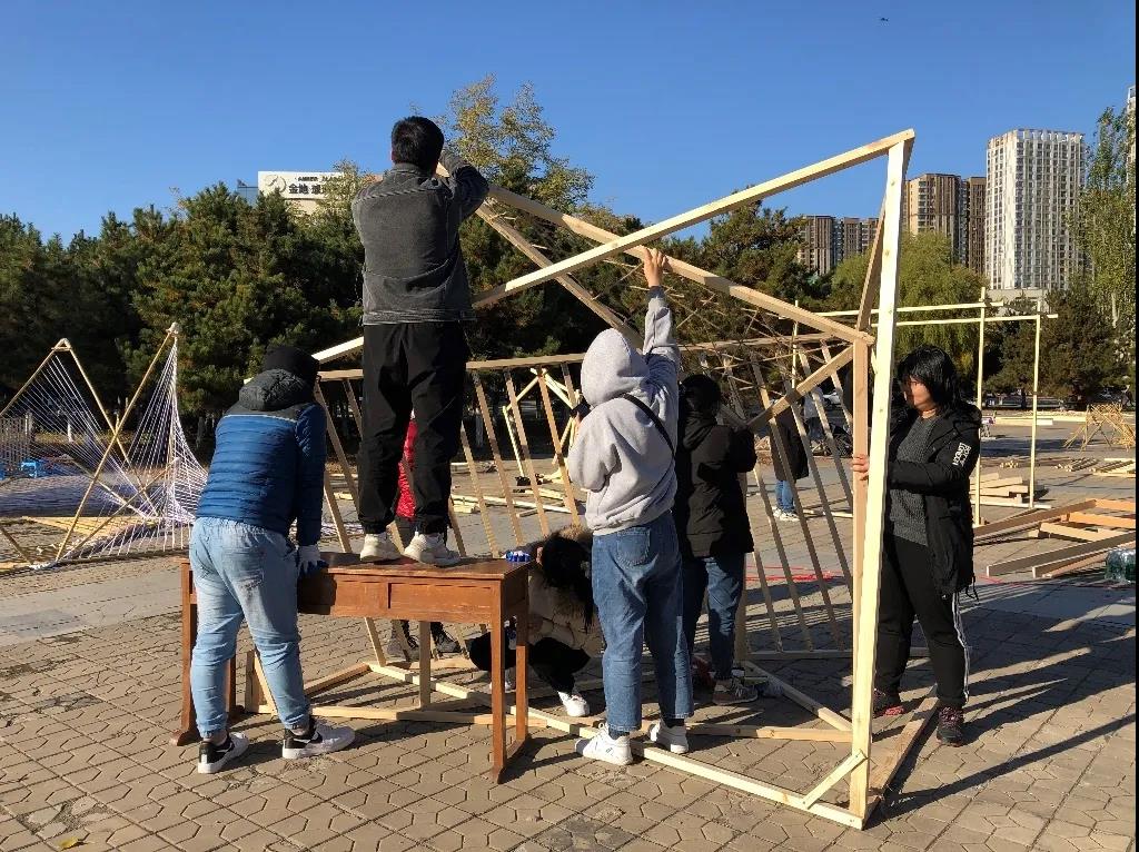 比赛为期三天,小组成员们通力合作,团结共进,通过建造实践,获得了对材料性能、结构及建造方式的新的认识;通过自己动手建造的空间,探讨了人体尺度的活动体验;通过竞赛,学生提升了对专业知识的实践认知、强化了将创新理念转化为动手实践成果的过程训练,有效的增强了学生团队协作和实际动手能力。从开始的设想到初试搭建到难度提升、最终成型,辛苦的历程是同学们最宝贵的收获,既与省内各高校同学进行了切磋交流,又激发了他们对专业学习和创作的热情,今后必将行之高远!