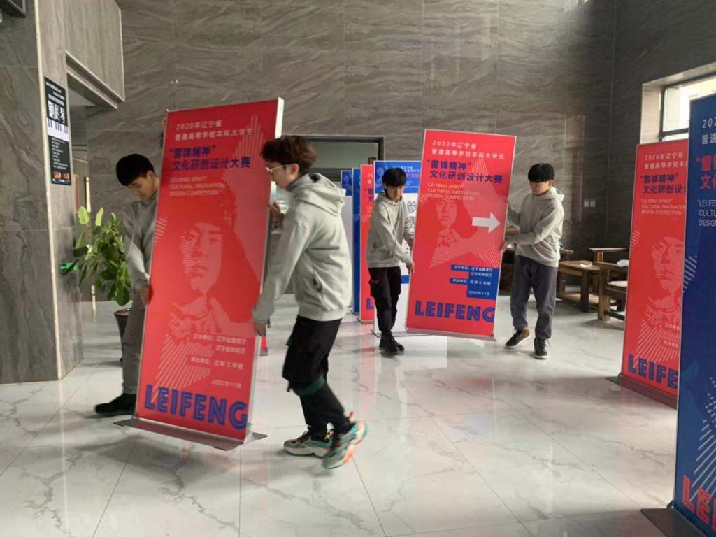 由我校承办的2020年辽宁省普通高等学校本科大学生“雷锋精神”文化研创设计大赛于2020年8月31日正式开始征集,经过两个月的网上投稿及评选工作,即将迎来现场决赛的时刻。近日,为保证比赛顺利进行,沈阳工学院艺术与传媒学院视觉传达设计专业的老师带领学生志愿者们正在紧张有序地忙碌着现场赛前的准备工作。