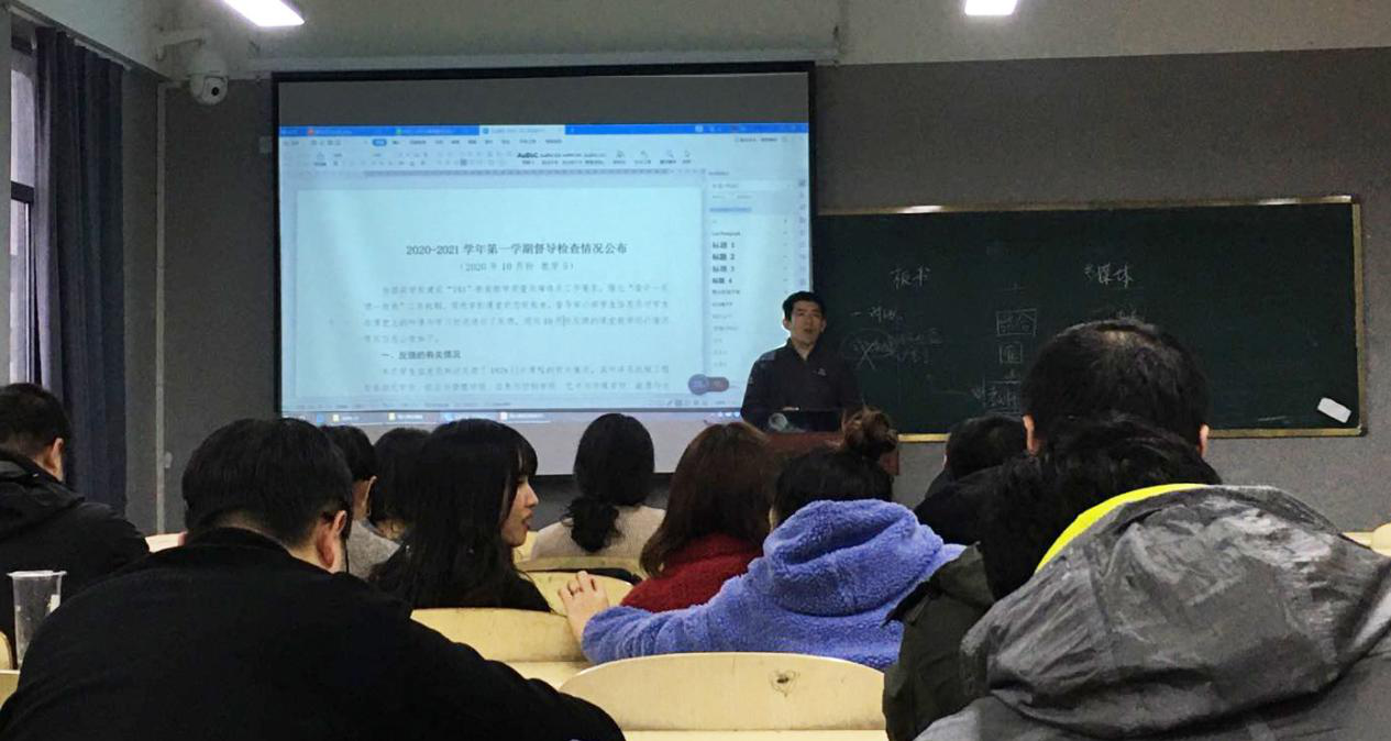 2020年11月18日,艺术与传媒学院召开学生反馈课堂教学情况说明会议,全体教师参加会议,会上李志港院长针对督导部门检查校内学生信息反馈结果向全体教师有针对性的做了解读。